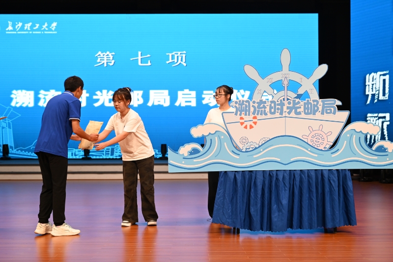 典礼上举行了充满仪式感的“溯流时光邮局”启动仪式。新生代表将写给未来的信投入时光信箱,记录大学梦想,锚定成长坐标。