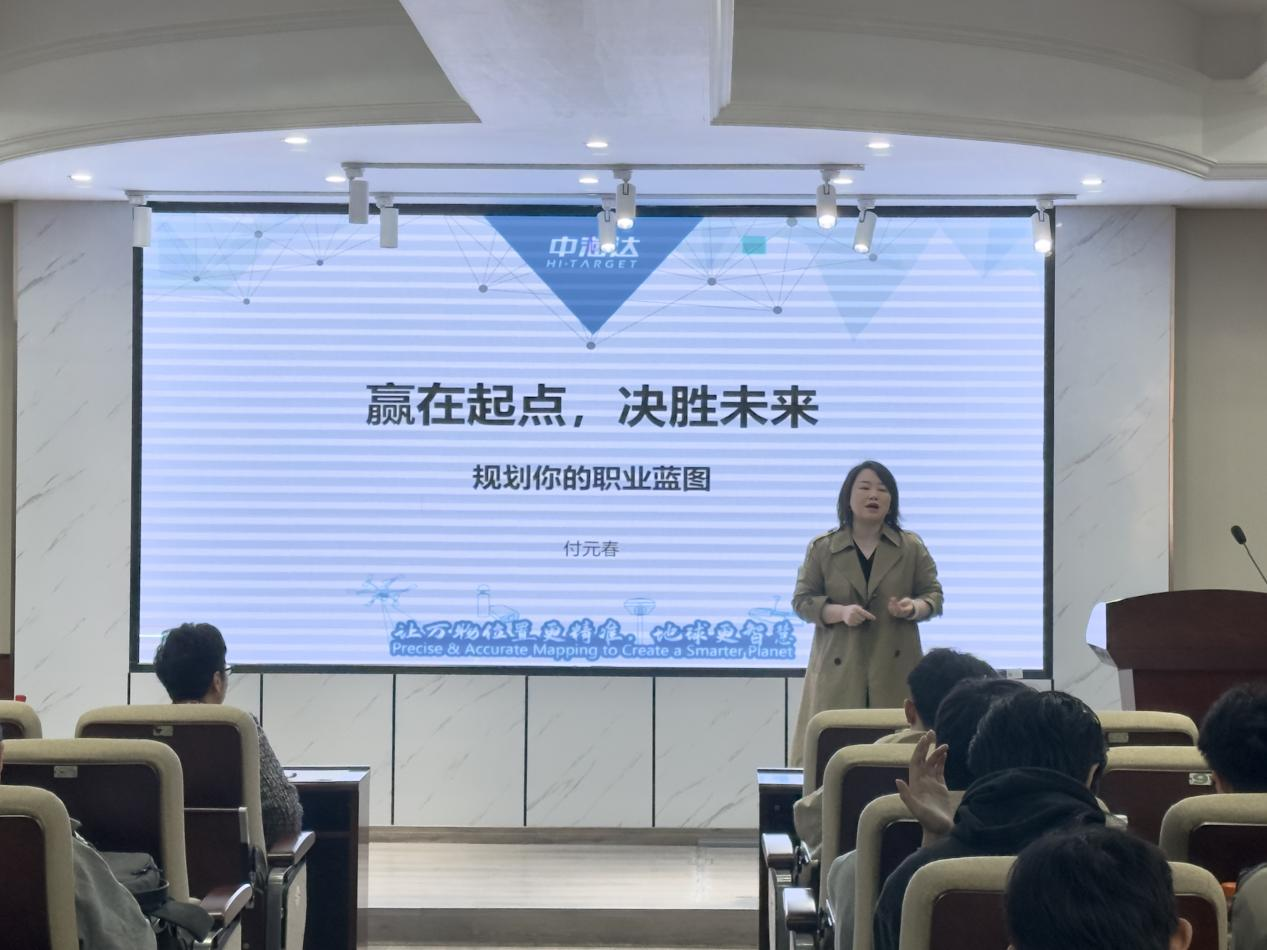 本次讲座以“赢在起点,决胜未来——规划你的职业蓝图”为主题。付元春结合《中国地理信息产业发展报告(2024)》核心数据,为同学们解读了行业发展趋势,勾勒出测绘地信产业“全景图”,也给同学们带来了积极信号:行业呈现持续增长态势,地理信息产业正迎来“黄金发展期”。针对同学们最关心的“未来我能做什么”等问题,付元春结合企业实际,分别就学院三个本科专业方向学生的成长路径进行了细致讲解,让同学们对自身专业对口的岗位有了更清晰认知。最后,付元春结合中海达及行业头部企业的招聘实践,为同学们的成长“支招”:一是努力学习,夯实专业基础;二是积极参与专业赛事,积累实操经验;三是开展实习,提前了解企业需求,明确个人定位;四是主动参与校园社团等组织,锻炼沟通表达能力和组织能力;五是提升英语或小语种水平,以适应行业国际化趋势。