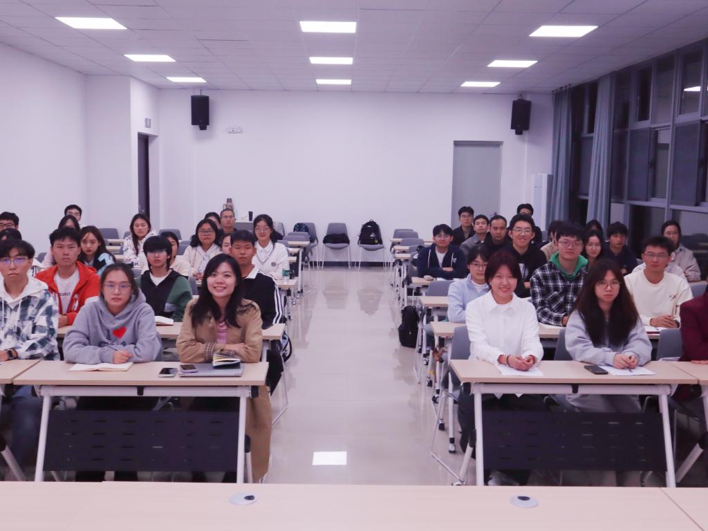 会议第一部分由杨舒文进行授课。首先,她对学生党建工作提出要求,希望同学们爱党爱国、认真履职、互帮互助。随后重点讲述了《习近平谈治国理政》第五卷的相关内容,还结合了《促进高质量充分就业》原文阐述了就业对社会发展的重要意义。同时,还组织同学们学习了党的二十届四中全会精神,解读“十五五”时期经济社会发展主要目标。培训中同学们认真聆听、记录要点,纷纷表示受益匪浅。