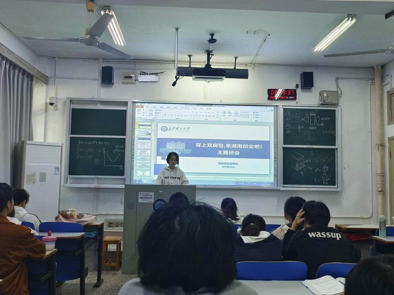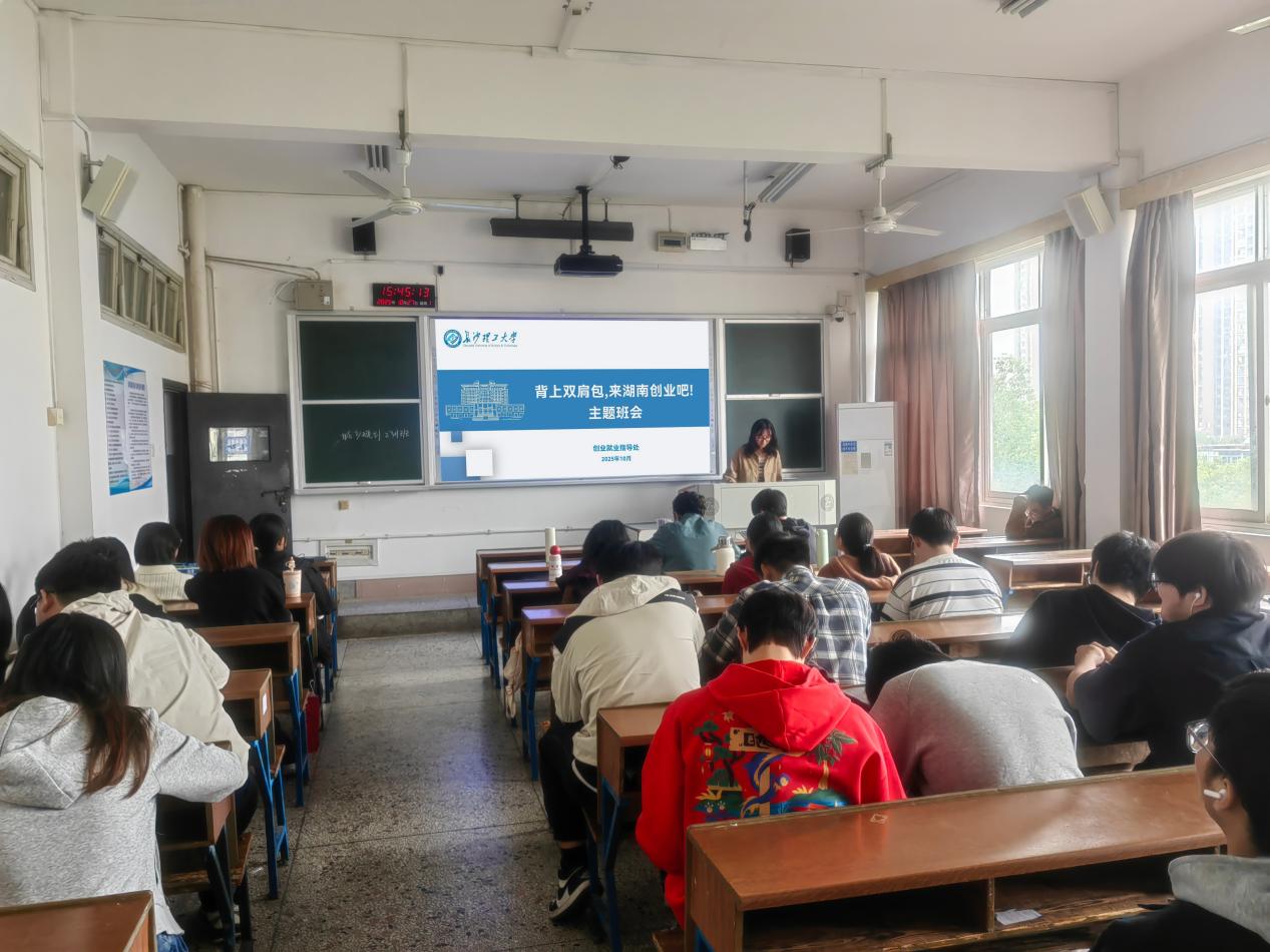 班会围绕四大核心内容展开系统学习。各班级通过PPT讲解、案例展示等形式,详细解读《湖南省大力支持大学生创业若干政策措施》中的“七个一”举措,涵盖创业服务平台搭建、扶持资金落实、导师团队组建等重点内容,帮助学生全面了解省级政策支持体系。随后,重点介绍了湖南省教育厅“两直接”政策以及学校“三优先”“两配套”“六可以”配套举措,针对休学创业保留学籍、弹性学制申请、校内创业场地免费使用等与学生密切相关的条款,逐一说明申请条件与办理流程,并现场解答学生疑问。