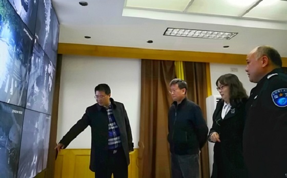 曹一家校长先后看望了金盆岭校区和云塘校区各门岗、校园“110”、视频监控中心等值班安保人员,和他们一一握手,感谢他们坚守岗位,维护了学校的安全稳定,并在二个校区的视频监控中心查看学校的安全情况。在和保卫处工作人员座谈中,他说2018年保卫工作取得较大的进步,得到学校的肯定,希望2019年保卫工作更上一层楼,积极推进金盆岭校区综治工作,并祝同志们新年快乐,万事如意。