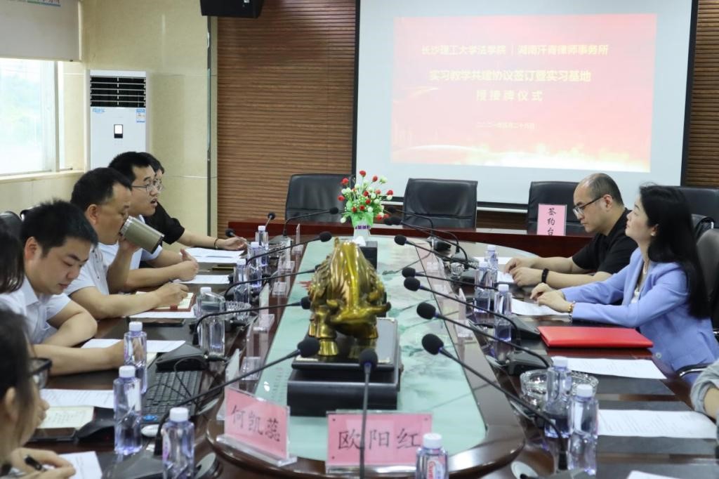 法学院院长张敏纯率队先后走访权度律师事务所、湖南汗青律师事务所、湖南天地人律师事务所等省内多家知名律所,就校所互联新模式展开讨论,签订《校外实习基地协议书》《“校地合作”大学生社会实践基地意向书》并挂牌实习教学基地、社会实践基地。副院长申纯、就业专干刘阳参与走访与座谈。