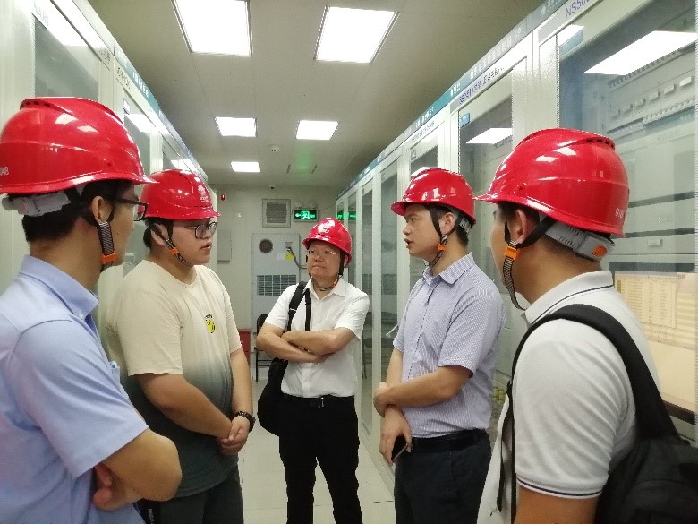 李传常副院长一行在电站工作人员陪同下,参观了高压室、变压器、PCS室、电池室、总控室,详细了解了储能电站的设计、建设、运维等情况。特别就储能电池、储能逆变器(PCS)、电池管理系统(BMS)的调试、运行与运维等情况进行了调研,并与现场工作人员探讨了课程设置、专业建设等问题。