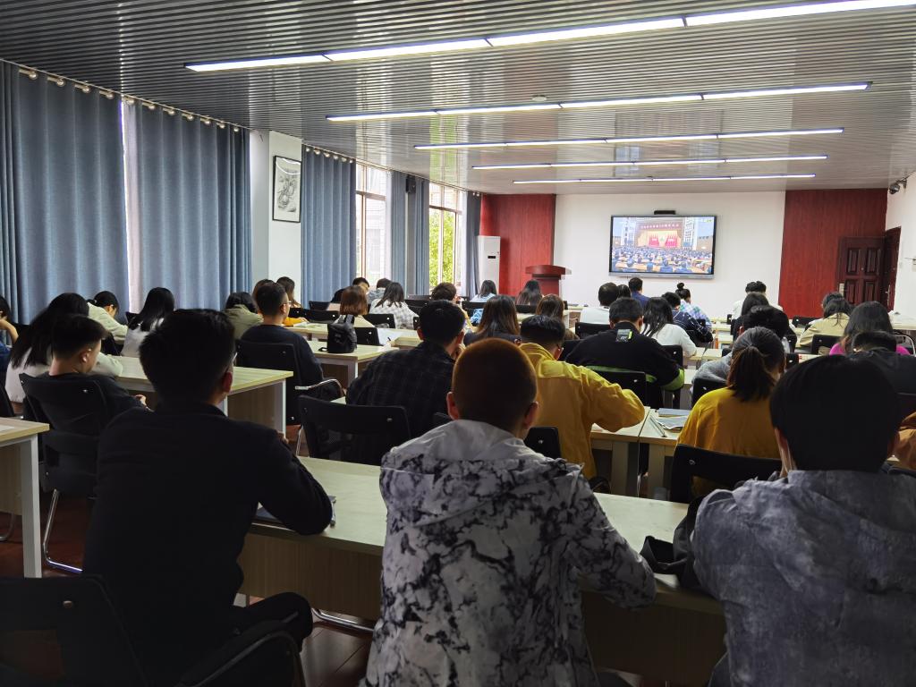 建筑学院代理党委副书记李家春、学生辅导员周芳、王宇霖、郭恒及全体学生党员在16教314集中收看实况直播,认真聆听习近平总书记在纪念辛亥革命 110周年大会上发表的重要讲话。