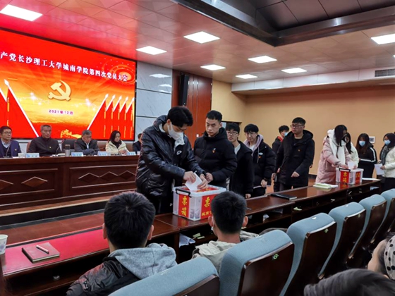 12月28日下午,城南学院党委在金盆岭校区四教报告厅召开第四次换届选举大会。校党委委员、副校长谈传生,校党委组织部副部长李芳瑾,城南学院全体师生正式党员参会。会议由院长赵华主持。
