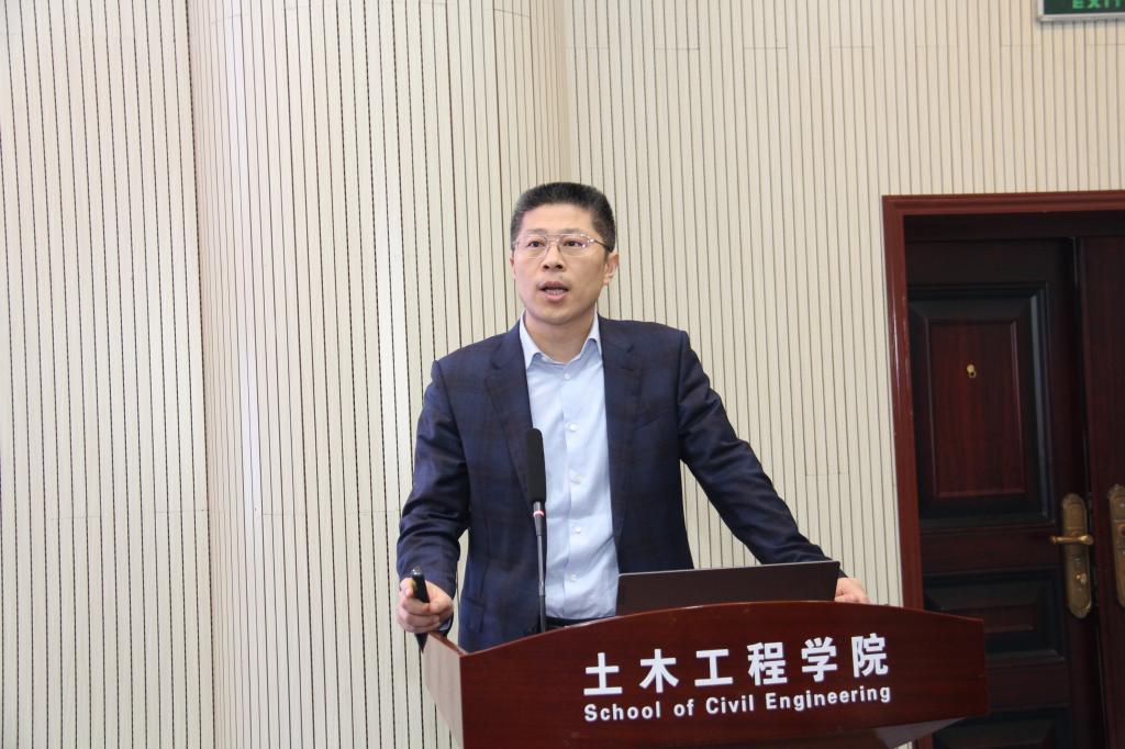 院长王磊作了题为《贯彻新发展理念 创一流土木学院》的主题报告。他围绕学院发展现状、存在的主要问题、定位与发展路线、发展路径与举措四个方面,对学院现状进行了深入分析,指出了当前存在的发展不平衡、不充分等问题,提出了新目标、新路线和新举措。他强调学院要响应国家相关文件精神,对标湖南省“三高四新”战略和学校第四次党代会要求,瞄准“全国一流土木工程学院”、沿着“1体2翼3平台5工程”的路线持续快速发展。