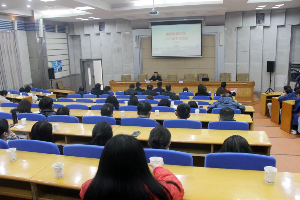 31日下午,继教学院在金盆岭校区办公大楼一楼多功能报告厅举行全院职工大会,进行年度工作部署。
