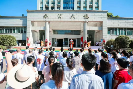 丁丹书记向全院师生发出号召,礼花的绽放,红色的现场,都代表着喜庆的开始,今天虽然酷暑高温,但艳阳高照也象征着光明灿烂的明天。回首昨日,一代又一代经管人用奋斗与智慧铸就了经管的昨天和今天,站在新的学院大楼前,从今天开始,学院的办公更加集中,教师与学生的工作场地更加饱满,学院的管理将更加高效。历史的接力棒已交到了我们手中,经管学院发展的重任已交到我们手中,今天的经管学院拥有最好的条件,但同样也面临最大的发展压力。压力与使命同在,责任与发展同在,惟有同心同向,惟有苦干、实干、加油干,我们才能在新时代谱写属于经管的新的辉煌篇章!