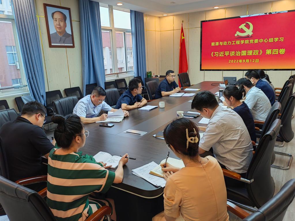 9月12日下午,能源与动力工程学院党委中心组在云塘校区新能源大楼2号楼511会议室组织集中学习《习近平谈治国理政》第四卷,学习贯彻习近平总书记重要讲话重要文章重要指示批示精神。院党委书记成华主持,院党委委员、全体辅导员参加了学习。
