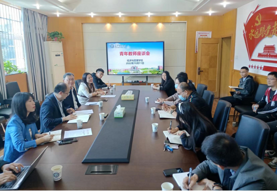10月11日上午,经济与管理学院在金盆岭校区办公大楼三楼会议室召开了青年教师座谈会。副校长谈传生、学院党委书记丁丹、副院长彭新宇(主持工作)、副院长刘坚和近5年进校的15位青年教师代表一起,共同探讨青年教师的自我成长及学院的未来发展。