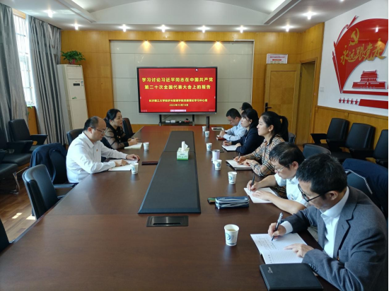 10月16日上午,经济与管理学院党委理论学习中心组在金盆岭校区12教200报告厅与学院师生共同集中收看中国共产党第二十次全国代表大会开幕会后,在办公大楼三楼会议室举行专题学习会,集体学习讨论了习近平同志在中国共产党第二十次全国代表大会上的报告。