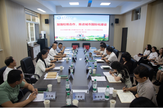 7月4日,长沙市人民政府副市长高文棋带队到我校调研并召开座谈会,副校长张军辉出席。长沙市委外事工作委员会,学校对外合作与交流处、外国语学院相关负责人陪同调研。