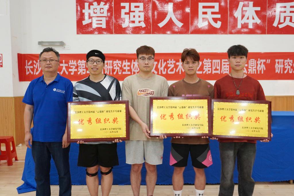 经过八强赛、半决赛和决赛的激烈对抗,水利与海洋工程学院代表队突出重围,获得本届乒乓球赛冠军;交通学院代表队获得亚军;电气与信息工程学院代表队获得季军;交通学院陈韬等15名同学获得“优秀运动员”称号;化学与医药工程学院代表队、数学与统计学院代表队、材料与科学工程学院代表队、物理与电子科学学院代表队获得“优秀组织奖”。与会领导和老师为获奖团体和个人颁奖。