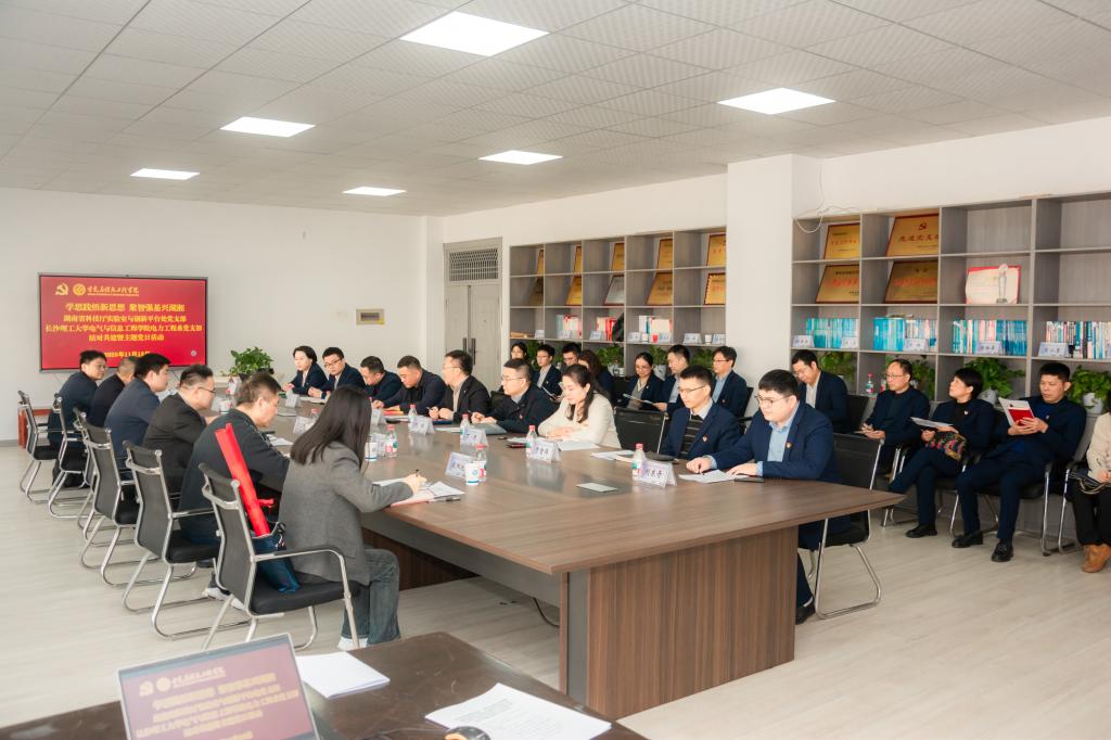 1113日,湖南省科技厅党组成员、副厅长实验室与创新平台处党支部书记尹文辉带领支部成员来校与电气学院电力工程系党支部开展“学思践悟新思想 聚智强基兴湖湘”结对共建暨主题党日活动。副校长张军辉陪同参观并出席座谈会科技处组织部相关部门负责人,电气学院党委书记丁丹在家领导,电力工程党支部成员参加座谈交流