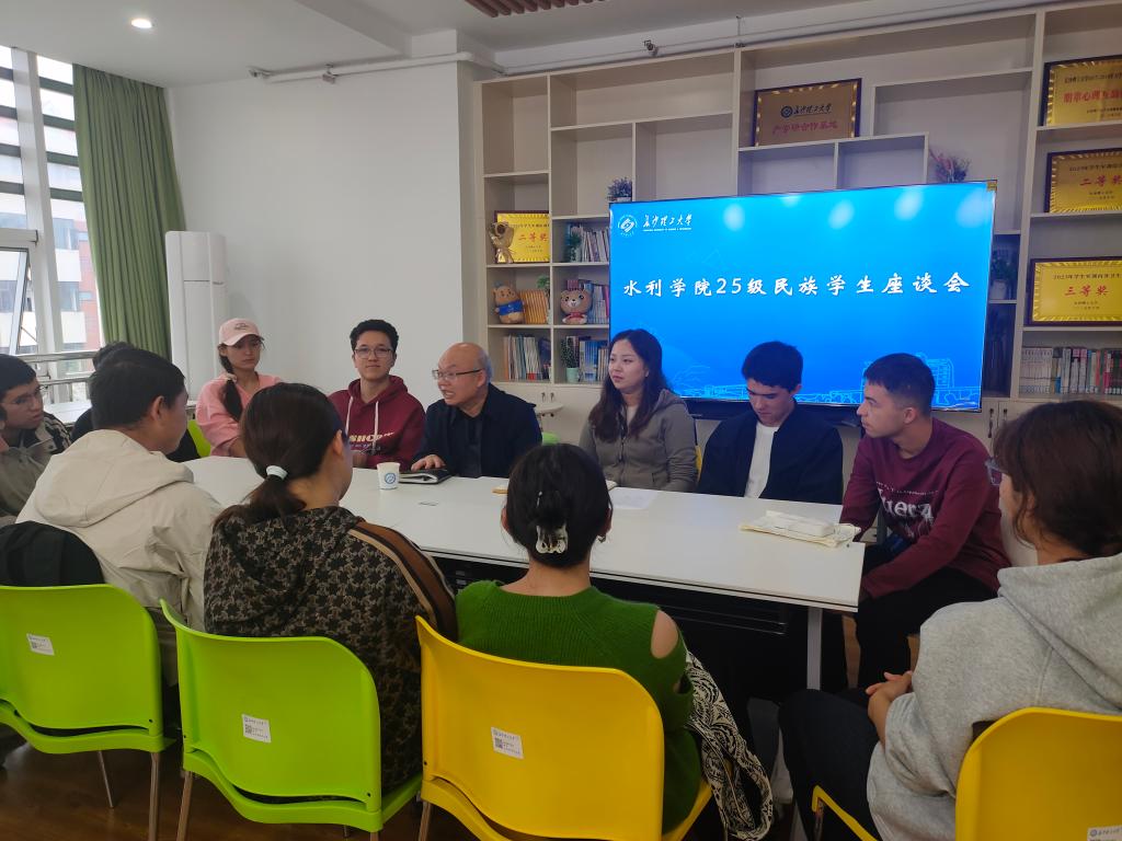 为促进各民族学生交往交流交融,11月6日,水利学院在云塘校区新能源一栋407团体辅导室召开了2025级民族学生座谈会。学院关工委副主任曾令球、2025级辅导员王正博及12名学生代表参会。座谈会上,来自新疆的学生们分享了适应气候、饮食差异及学习方法转变的经历与感受。大家表示,通过参与校园文化活动,有效融入了集体生... 【2025-11-07】
