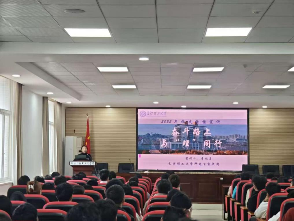 为使2025级研究生深入了解学校发展历程,感悟长理文化精神,11月4日下午,能动学院在云塘校区新能源大楼二栋502举行校史校情主题讲座。本次讲座由校研究生宣讲团成员李欣月主讲,能动学院2025级全体研究生参加。李欣月从学校的创办渊源、校史文化、校徽沿革及合并二十年来的发展历程等方面进行了介绍。她从2003年长沙交... 【2025-11-06】