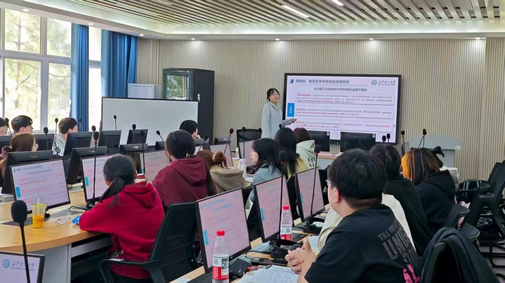 近日,外国语学院组织全院各班级开展“背上双肩包,来湖南创业吧!”主题班会,通过政策解读与资源优势介绍,为学子创新创业注入强劲动力。班会在学院整体部署与各班团支书的积极组织下有序开展。在政策解读环节,团支书们对《湖南省大力支持大学生创业若干政策措施》中的“七个一”举措进行了阐释,详细解读了湖南省及... 【2025-11-05】