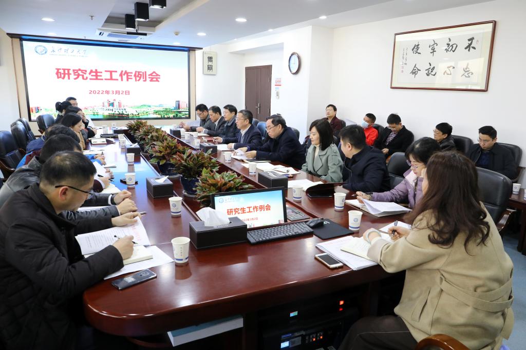 研究生院院长杨华峰从研究生教育顶层设计、研究生培养全过程管理体系、研究生教育内涵式发展、研究生招生工作、研究生思想政治教育五个方面对我校2021年学位与研究生教育工作进行总结。同时从加强“双主体”发展战略实施、提升学位点建设水平、推进科教融合和产教融合、有效改善研究生生源质量、完善研究生思政教育与管理工作等方面对2022年度研究生院工作计划进行详细解读。并就今年研究生教育的工作提出了具体要求:一是坚持战略思维,准确把握研究生教育的发展方向;二是加强顶层设计,完善相关制度体系建设;三是推进招生制度改革,拓宽招生渠道,吸引优质生源;四是提高研究生培养质量,不断提高工作能力和水平;五是持续提升高水平师资队伍建设,强化岗位责任意识。