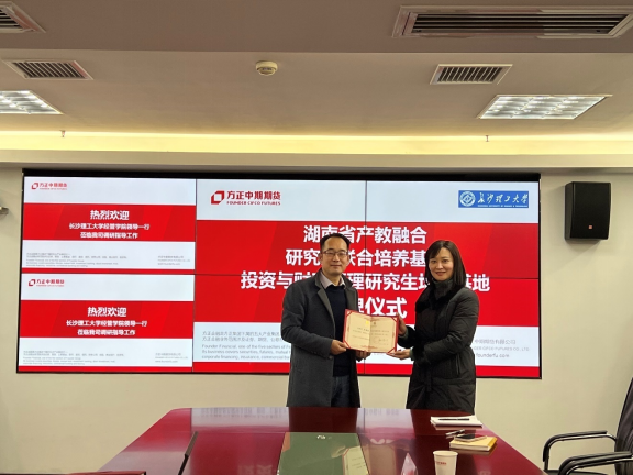 湖南省产教融合研究生联合培养基地“投资与财富管理研究生培养基地”由我校牵头、方正中期期货参与建设。该研究生联合培养基地的正式运行,将促进我校在期货及衍生品方面的人才培养,推进我校金融类专业方向的学科建设,探索金融硕士培养过程中产教融合机制建设,开拓校企合作新模式,实现双方的携手共赢。