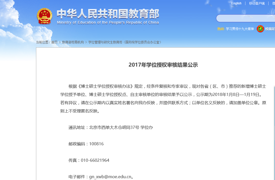 1月8日,国务院学位委员会办公室发布了《2017年学位授权审核结果公示》,根据公示,我校将新增水利工程、电气工程、电子科学与技术等3个一级学科博士点(其中已有二级学科博士点新增一级学科博士点1个,无二级学科…