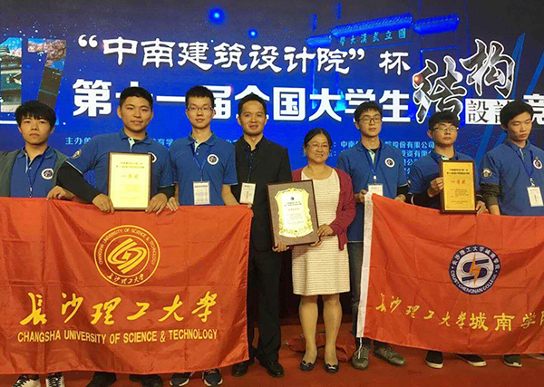 颁奖现场 指导老师付果、领队老师平伟军与获奖队伍合影10月18—22日,“中南建筑设计院”杯第十一届全国大学生结构设计竞赛在武汉大学举行,此次赛题为“渡槽支承系统结构设计与制作”。来自清华大学、浙江大学、…